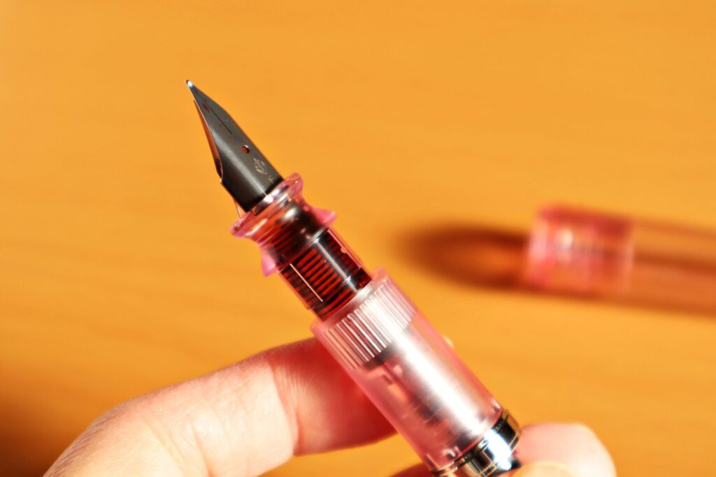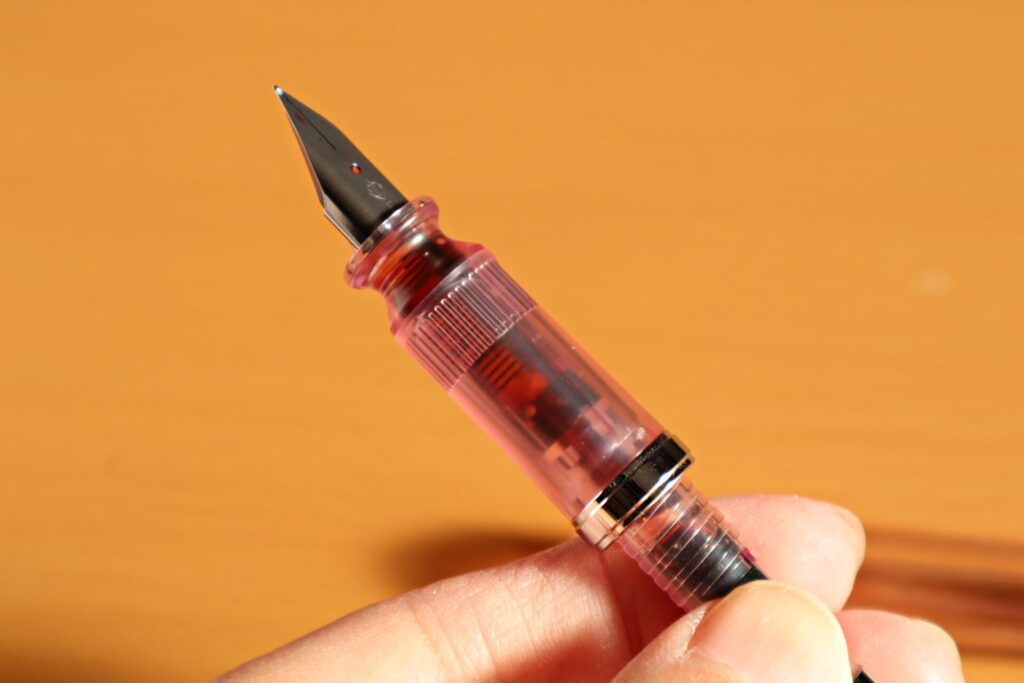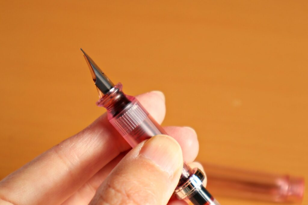 (万年筆が透明のため、インクを入れて撮影をしています。)