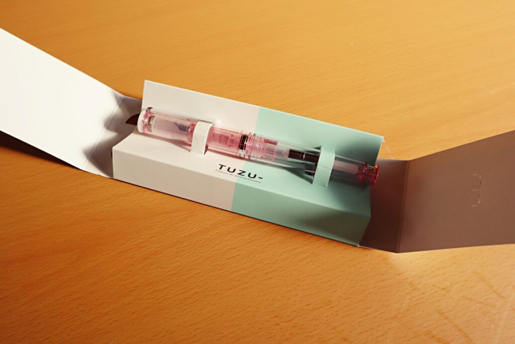 『 TUZU アジャスト 万年筆 グラッシー 』を買った時、こんな箱に入っていました。